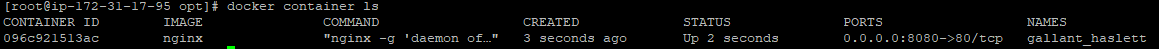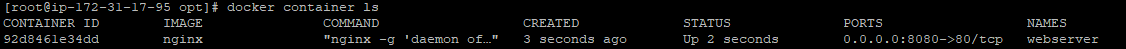 위 커맨드를 실행한 후 컨테이너 목록을 다시 조회해 보니, name에 webserver가 들어간 것을 확인할 수 있다.